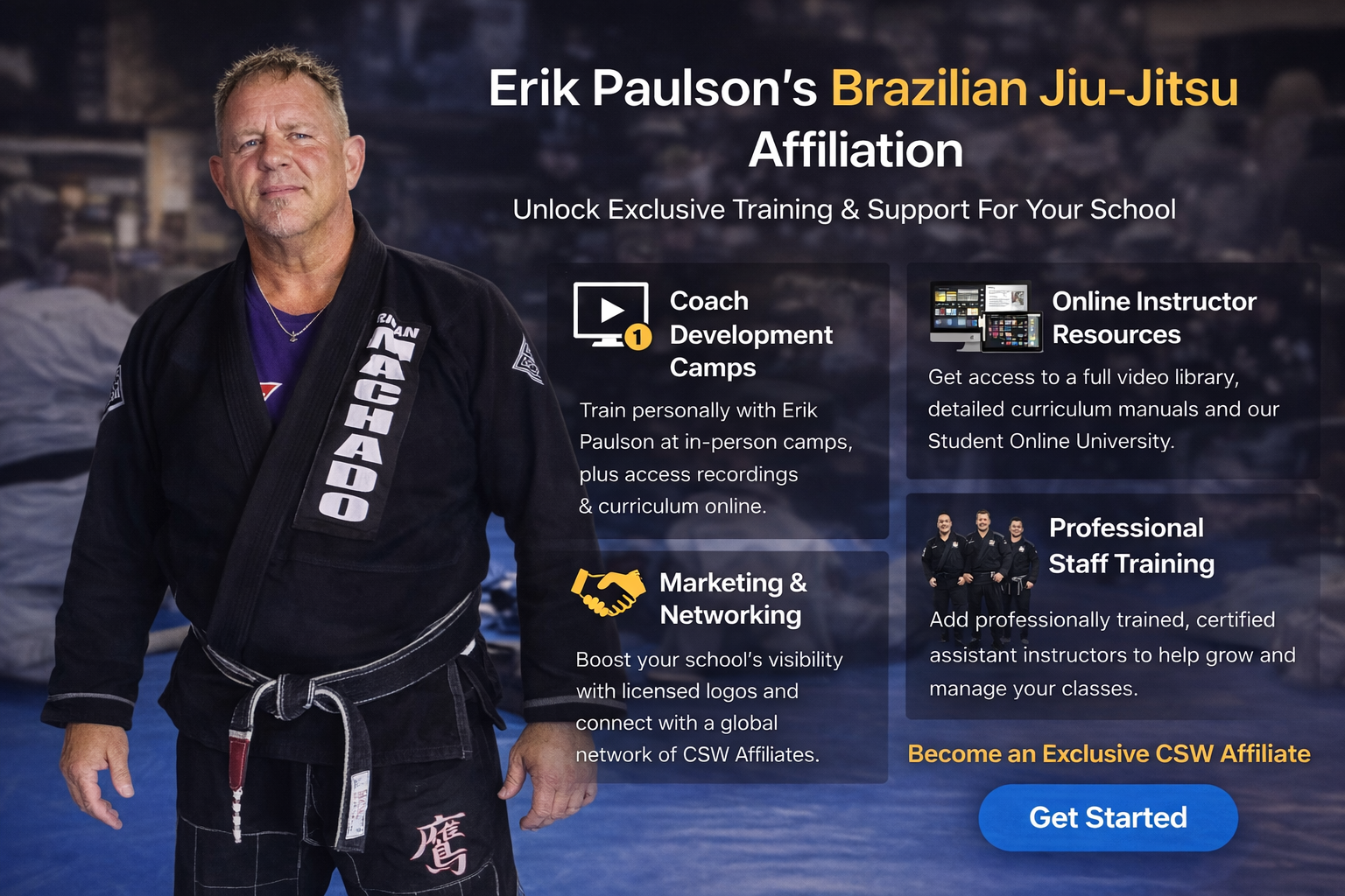 Erik is also the founder of Combat Submission Wrestling and STX Kickboxing and has coached elite athletes across the early no-holds-barred era, the rise of MMA, and into the modern competitive landscape. His ability to adapt, evolve, and refine training over decades is a direct reflection of how this association operates. Programs are continuously updated, standards are maintained, and affiliates benefit from a system that grows with the industry rather than chasing it.