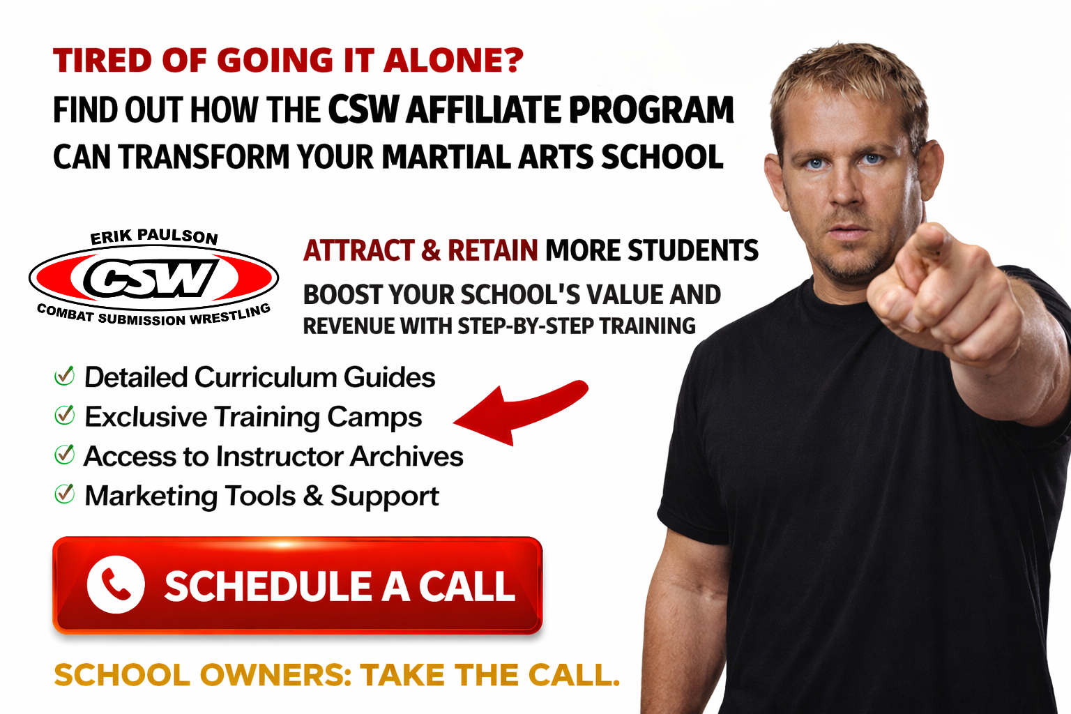 Today, Erik leads the CSW Training Center in Fullerton, California, coaching and mentoring elite athletes and coaches. His students and training partners through the years include names like Josh Barnett, Ken Shamrock, Renato Sobral, Cub Swanson, James Wilks, Sean Sherk, and Brock Lesnar. He also served as striking coach for Team Lesnar on The Ultimate Fighter Season 13.
