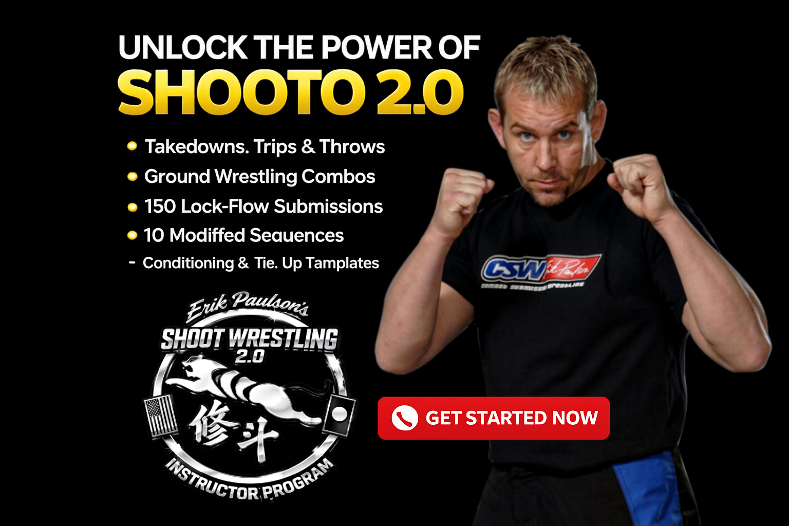 Erik Paulson is a world-renowned martial artist and the founder of Combat Submission Wrestling (CSW) and STX Kickboxing. He began training Judo as a child and, by 1988, was studying Brazilian Jiu-Jitsu with Rorion, Royce, and Rickson Gracie in Rickson’s garage. At the Inosanto Academy he connected with Yorinaga Nakamura and immersed himself in Shoot Wrestling, later adding intensive Catch Wrestling under the legendary Billy Robinson. This multi-discipline path shaped the CSW system’s blend of pressure, control, and submission fluency.